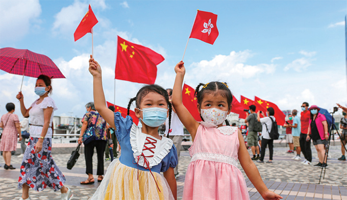 「賀建黨百年,慶香港回歸」。在香港,集團(tuán)制定專門方案,成立專門機(jī)構(gòu),組織開展香港政治形勢(shì)課程培訓(xùn)、專項(xiàng)工作大討論和主題黨日活動(dòng), 助力推動(dòng)黨史學(xué)習(xí)教育在香港可見(jiàn)、可感。集團(tuán)組織小區(qū)、員工及香港青少年「尋訪抗戰(zhàn)足跡、聆聽歷史故事」,接受愛(ài)國(guó)主義教育。在7月1日舉行的升旗儀式上,護(hù)旗方隊(duì)首次采用中式步操進(jìn)場(chǎng),引人注目。塞拉利昂下紅旗招展,尖沙咀一片紅,吸引許多市民打卡,與國(guó)旗合影。香江岸邊,市民揮舞著五星紅旗或紫荊花區(qū)旗,臉上洋溢著喜悅與自豪。東方之珠以她特有的浪漫方式融入祖國(guó),處處閃耀「中國(guó)紅」。