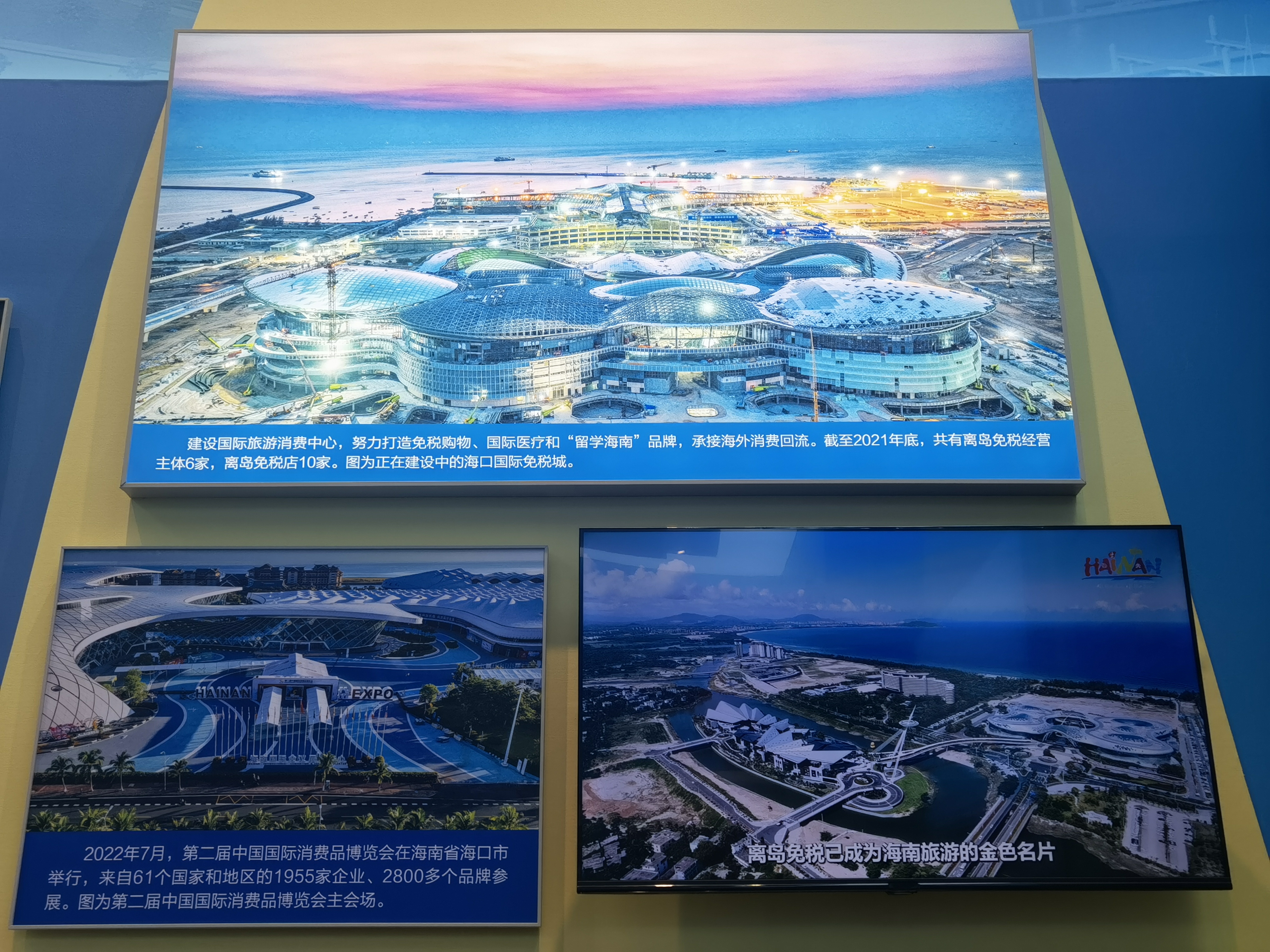 圖為主題成就展地方展區(qū)(海南)展示正在建設中的??趪H免稅城