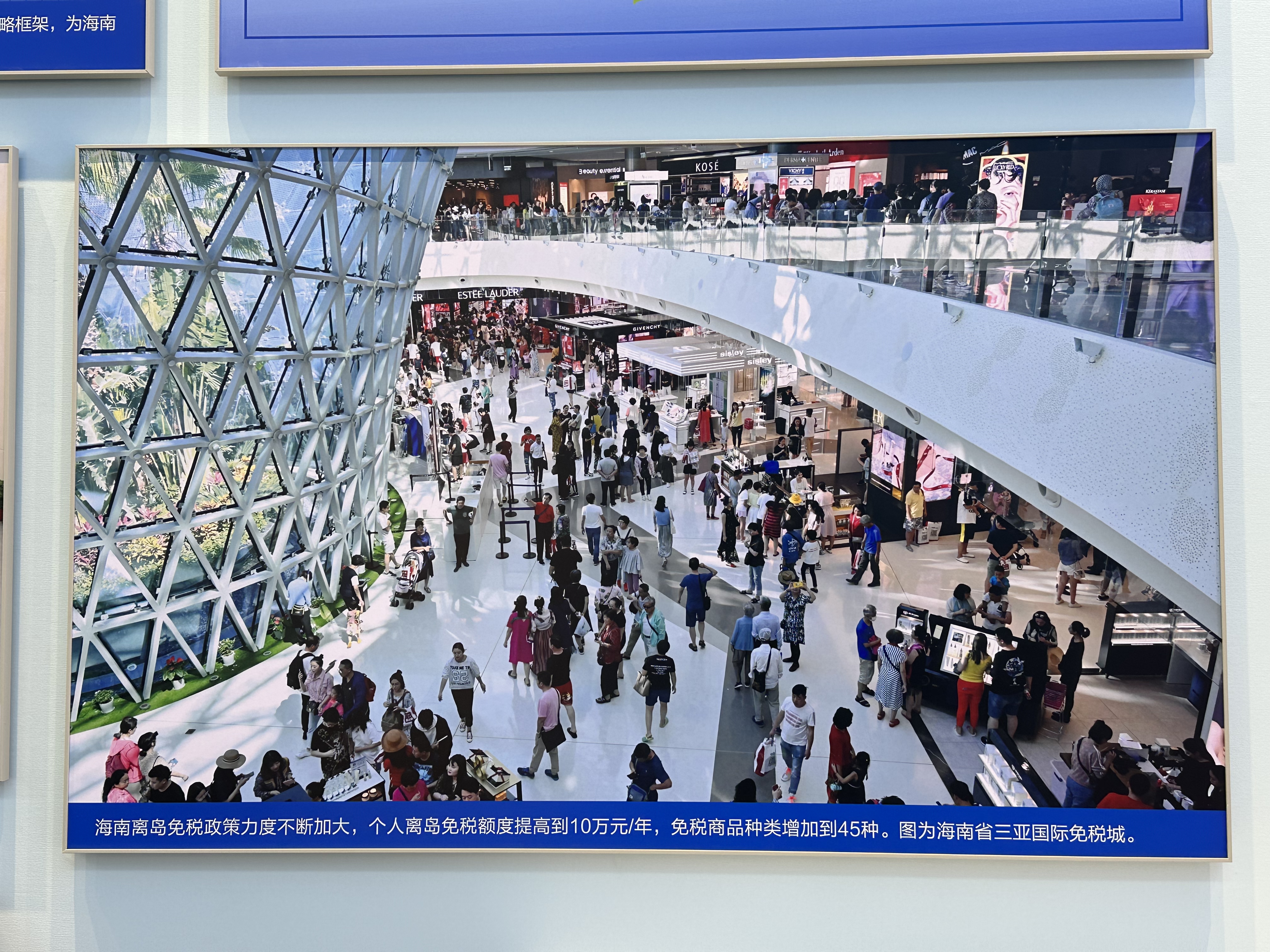 圖為主題成就展地方展區(qū)(海南)展示的三亞國際免稅城內(nèi)景。