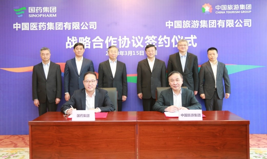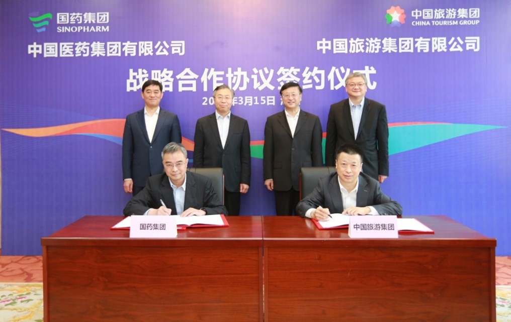 3月15日,集團與國藥集團在深圳簽署戰(zhàn)略合作協(xié)議,雙方旗下中國旅游集團中免股份有限公司與中國國際醫(yī)藥衛(wèi)生有限公司簽署股權合作協(xié)議。集團董事長陳寅,總經理王海民;國藥集團董事長劉敬楨,副總經理胡建偉、董增賀、晉斌出席簽約儀式并見證簽約。集團副總經理、中國中免董事長李剛與國藥集團副總經理鄧金棟分別代表雙方簽署戰(zhàn)略合作協(xié)議,中國中免總經理王軒與國藥國際總經理周頌分別代表雙方簽署股權合作協(xié)議。