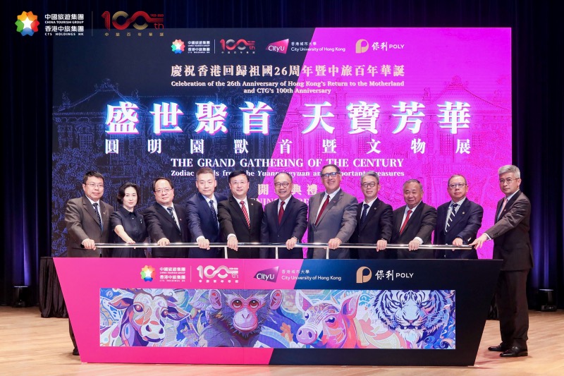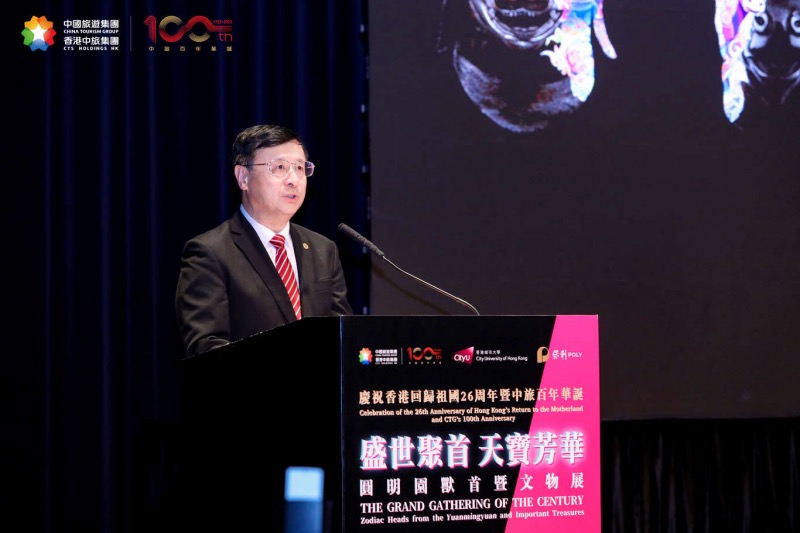 7月3日,“盛世聚首 天寶芳華---慶祝香港回歸祖國26周年暨中旅百年華誕圓明園國寶獸首文物展開幕典禮”在香港城市大學順利舉行。來自國家有關部委領導、香港特區(qū)政府有關官員、港澳地區(qū)各界精英、賢達名流、中國旅游集團合作伙伴、旅游同業(yè)等約三百人出席盛事,見證了這一難忘時刻。