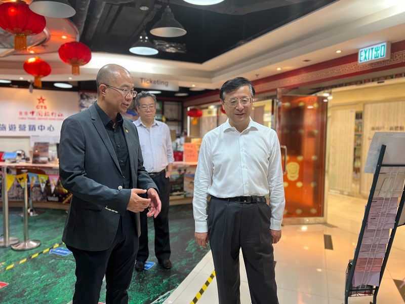 在香港中旅社沙田分社,陳寅董事長詳細了解旅游業(yè)務恢復情況和門市的經(jīng)營情況。陳寅董事長指出,經(jīng)過4年多時間的沖擊,香港旅游業(yè)迎來了恢復發(fā)展,要堅定發(fā)展信心,在服務質(zhì)量和服務體驗上多做文章,要用好集團在港的統(tǒng)一線上業(yè)務平臺,結(jié)合集團在內(nèi)地的旅游目的地資源,加快恢復和拓展業(yè)務。
