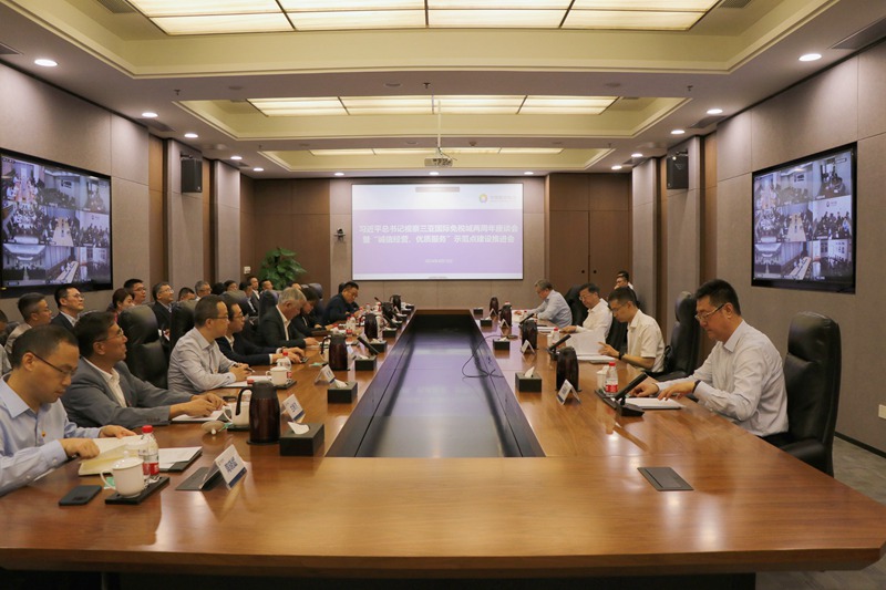 會(huì)后,與會(huì)人員現(xiàn)場參訪了集團(tuán)示范點(diǎn)企業(yè)三亞國際免稅城,大家一起重溫了習(xí)近平總書記對集團(tuán)的殷殷囑托,共同交流了示范點(diǎn)企業(yè)創(chuàng)建的好經(jīng)驗(yàn)、好做法。