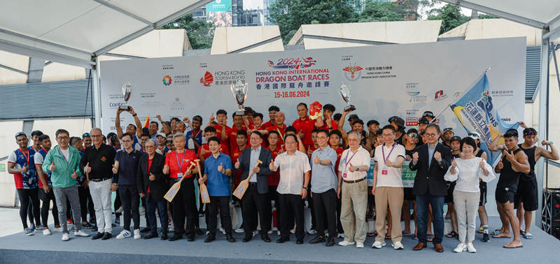 6月15日至16日,“2024香港國際龍舟邀請賽”在香港維多利亞港順利舉行,來自12個國家及地區(qū)的170多支隊伍,約4000名選手參賽。賽事由香港旅游發(fā)展局主辦、中國香港龍舟總會合辦,集團作為賽事贊助機構,特別贊助了慶祝中華人民共和國成立75周年紀念杯系列賽事。集團金鴻雁總會計師出席開幕典禮。集團呂友清董事、石善博副總經(jīng)理、劉昆副總經(jīng)理分別為獲得慶祝中華人民共和國成立75周年紀念杯暨香港中旅集團國際公開金杯賽、混合金杯賽和女子金杯賽的獲獎團隊頒獎并合影留念。