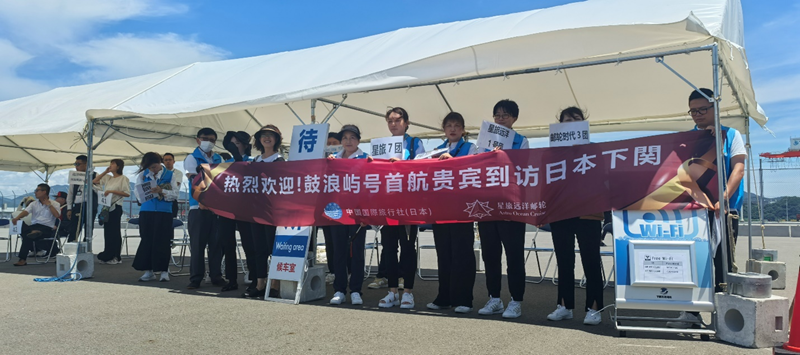 岸上游覽期間,郵輪途徑的各目的地港口舉行盛大的歡迎儀式,并與“鼓浪嶼”號進行了授牌交換。韓國濟州當?shù)赜^光社為游客帶來精彩的韓國當?shù)匚璧敢约皹菲餮葑?。抵達日本下關(guān)時,國旅(日本)分社為游客安排了豐富岸上游體驗。郵輪專門為返船游客準備了冰毛巾、雪糕等消暑用品,獲得一致好評。此外,本航次還邀請39名達人登輪體驗,在抖音、小紅書、微博及微信視頻號等多個平臺發(fā)布郵輪設(shè)施、美食推薦、郵輪攻略等不同維度圖文及視頻,提高了“鼓浪嶼”號產(chǎn)品曝光度。