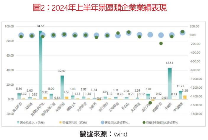 從營(yíng)業(yè)收入來(lái)看,復(fù)星旅文[復(fù)星旅游文化度假資產(chǎn)管理中心即地產(chǎn)銷售、運(yùn)營(yíng)收入為2.9億元人民幣,占總營(yíng)收的3%]銷售能力最強(qiáng),2024上半年?duì)I收94.52億元,華強(qiáng)方特和宋城演藝分別營(yíng)收32.67億和11.77億元。從盈利能力來(lái)看,宋城演藝盈利能力最強(qiáng),歸屬母公司股東凈利潤(rùn)5.5億元,華強(qiáng)方特和復(fù)星旅文歸母凈利潤(rùn)分別為3.51億元和3.22億元。海昌海洋公園、張家界、曲江文旅、西藏文旅仍處于虧損狀態(tài)。從同比增速來(lái)看,宋城演藝、長(zhǎng)白山營(yíng)收和歸母凈利潤(rùn)較2023年同期增長(zhǎng)率均超過(guò)50%。整體來(lái)看, 旅游市場(chǎng)回歸理性,景區(qū)類上市公司多數(shù)盈利能力較為一般,歸母凈利潤(rùn)區(qū)間值為虧損千萬(wàn)和盈利3億元之間,大多企業(yè)盈利同比2023年出現(xiàn)下降,整體形勢(shì)不樂(lè)觀。