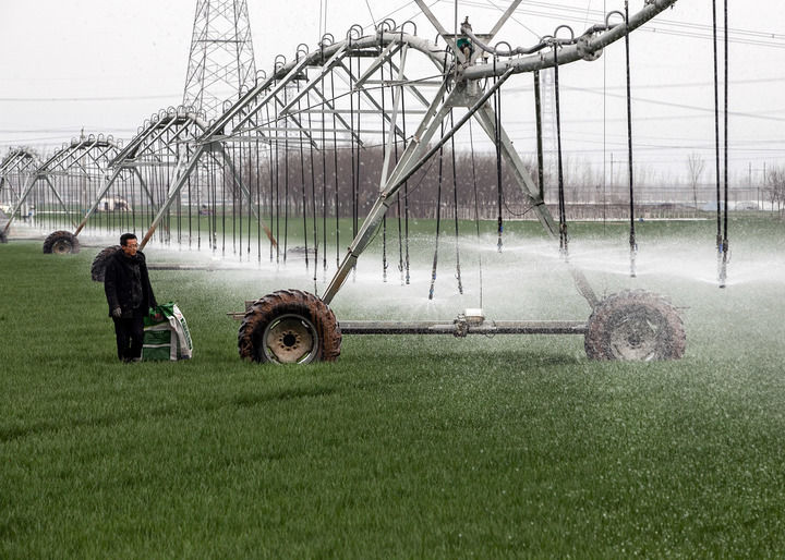??2024年3月18日,在河南省焦作市博愛縣孝敬鎮(zhèn)東原莊村瑞輝家庭農(nóng)場,村民使用全自動指針式噴灌機(jī)進(jìn)行澆灌作業(yè)。新華社發(fā)(程全攝)