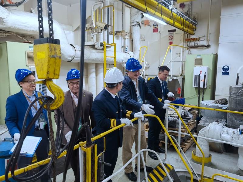 王海民仔細詢問了解各項航行設(shè)備運行狀況,深入機艙了解主機推進系統(tǒng)、輔機供電系統(tǒng)、造水系統(tǒng)、廢水處理系統(tǒng)以及壓載水系統(tǒng)等關(guān)鍵系統(tǒng)情況。