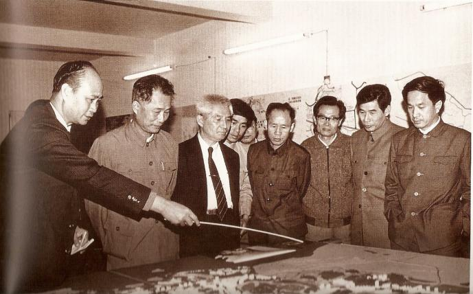 馬志民(左一)向時(shí)任中共中央委員、廣東省委書記林若(左二)介紹華僑城開發(fā)規(guī)劃