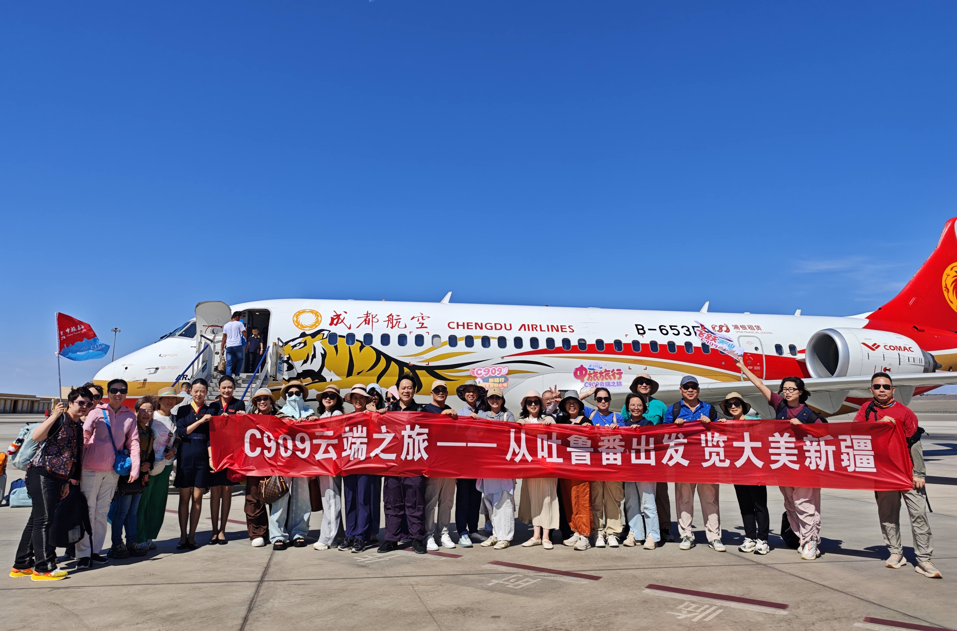 8月16日,由中旅旅行攜手中國商飛、成都航空共同策劃的“C909云端之旅”新疆旅游首發(fā)儀式在吐魯番市成功舉行。來自全國各地的27名旅客組成首發(fā)團(tuán),率先搭乘C909環(huán)疆快線,開啟“獨(dú)庫北疆4飛10日游”特色路線,成為“航空+文旅”創(chuàng)新模式的首批體驗(yàn)者。