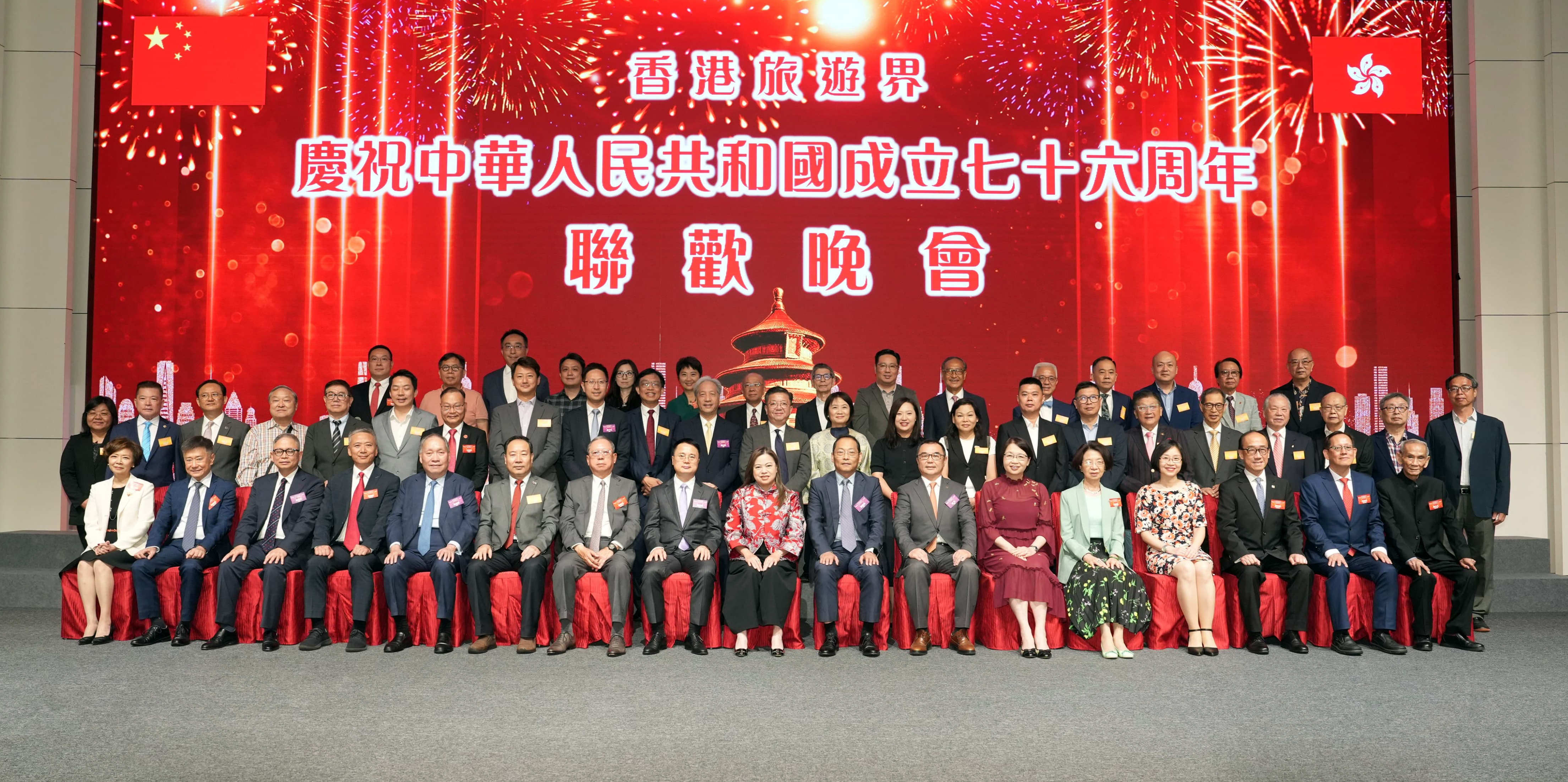 9月17日,香港旅游界舉辦慶祝中華人民共和國成立七十六周年聯(lián)歡晚會(huì)。集團(tuán)副總經(jīng)理簡易出席并主持祝酒儀式,中聯(lián)辦經(jīng)濟(jì)部副部長郭韶偉、外交部駐港公署辦公室主任劉孝明、香港文體旅局局長羅淑佩、香港旅發(fā)局主席林建岳、旅游界立法會(huì)議員姚柏良等嘉賓共同主禮。