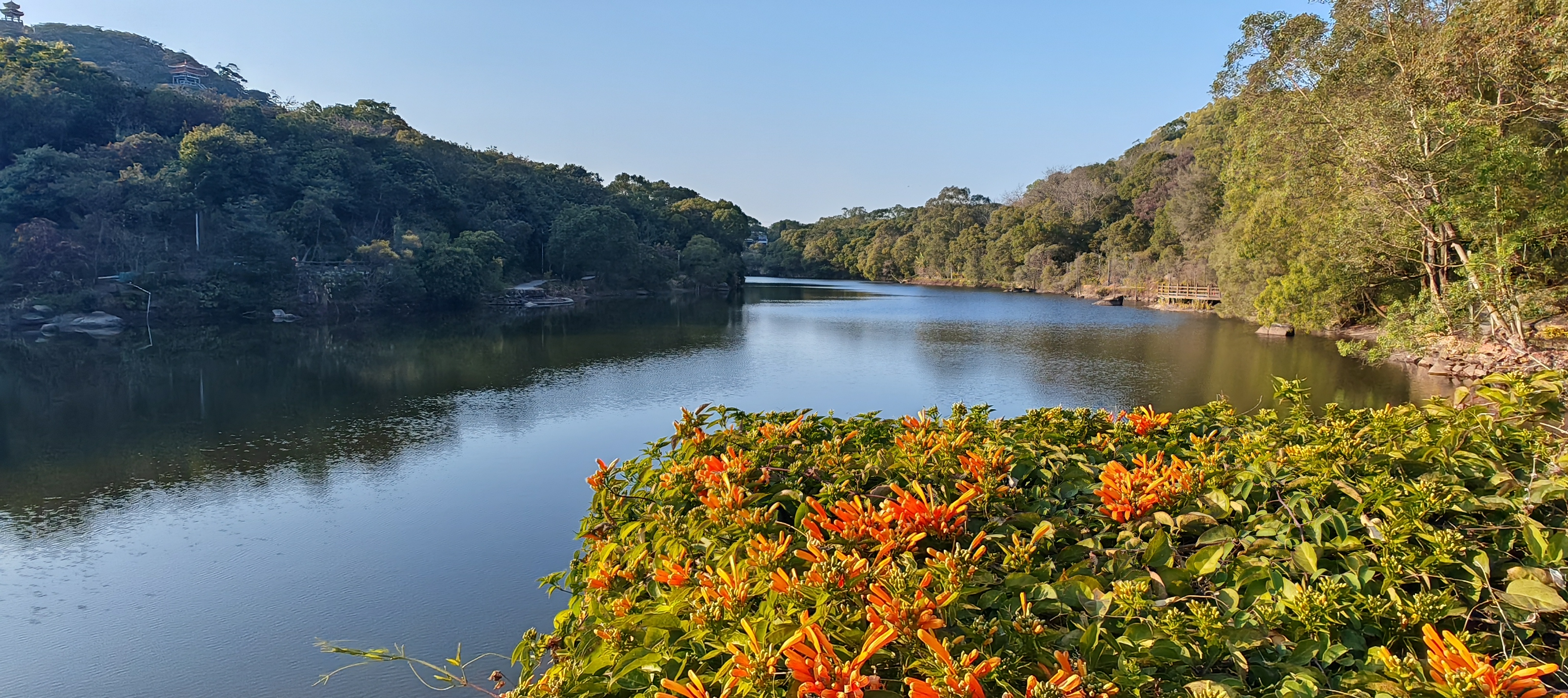 龜埕片區(qū):為森林公園的中心景區(qū),以龜湖為中心,建有環(huán)湖步道和觀景臺(tái)。湖西側(cè)為占地500畝的“百龜壽園”和鐫刻有知名書(shū)法家的墨寶1300多幅的鷹石山摩崖石刻區(qū),該區(qū)域還建有游客中心和石厝知青舊址等建筑場(chǎng)館。龜湖環(huán)湖建設(shè)了寬約3m的青石棧道,供游客環(huán)湖觀賞湖面風(fēng)光,湖水景觀資源優(yōu)美。