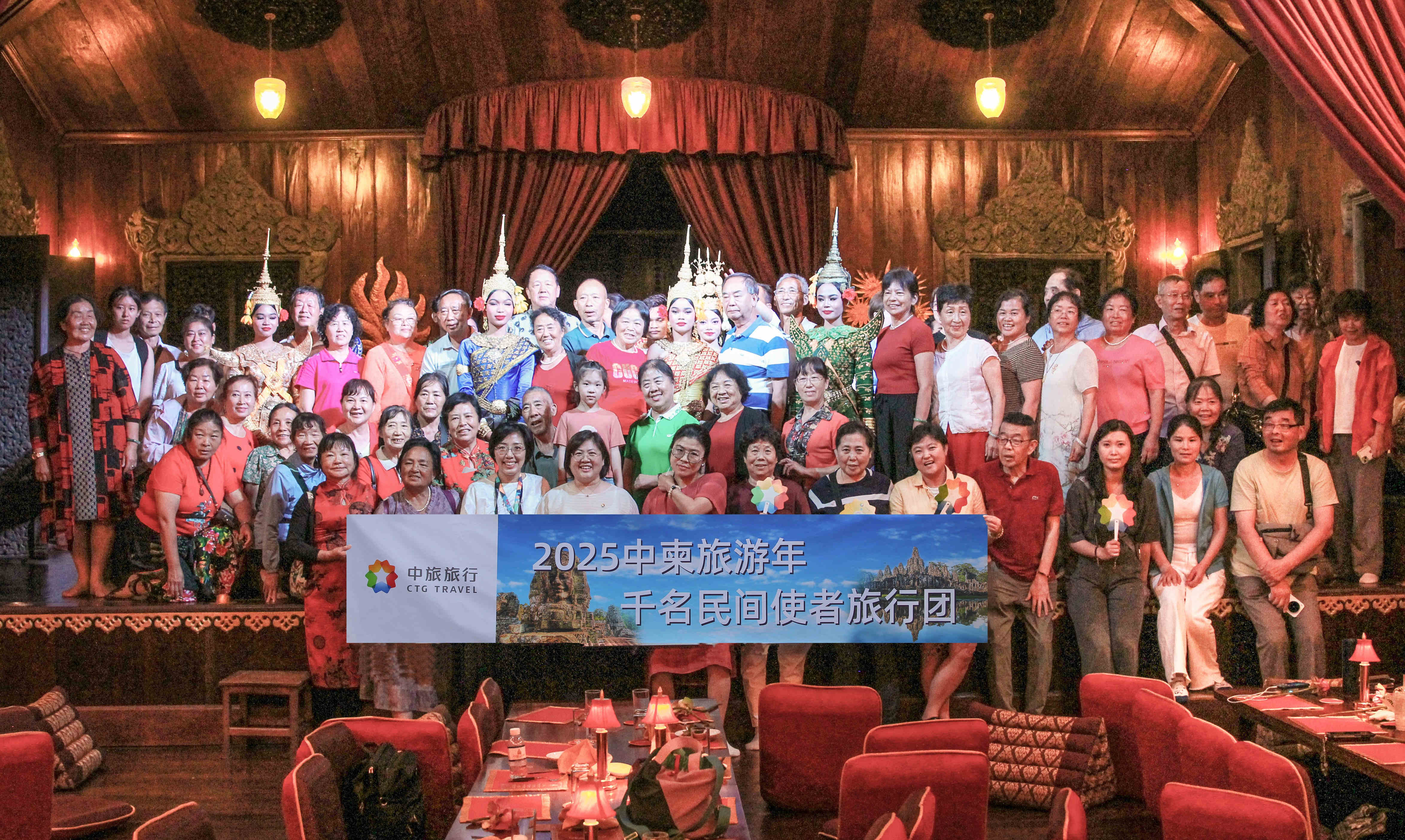 活動(dòng)行程融合了巴戎寺、塔普倫寺、小吳哥寺等經(jīng)典歷史遺跡,為游客提供了兼具藝術(shù)魅力與生活氣息的沉浸式旅程,展現(xiàn)了中旅旅行的產(chǎn)品設(shè)計(jì)與資源整合能力。期間在暹粒文化地標(biāo)“仙女劇院”策劃的歡迎歌舞晚宴,邀請(qǐng)到暹粒副省長(zhǎng)吳勝卡先生出席并致辭?;顒?dòng)相關(guān)視頻被中國(guó)駐柬埔寨大使館官方賬號(hào)轉(zhuǎn)發(fā)。自今年5月 “2025中柬旅游年千人游”首發(fā)團(tuán)后,中旅旅行已陸續(xù)組織系列團(tuán)組,累計(jì)接待744人,助力中柬文旅交流。