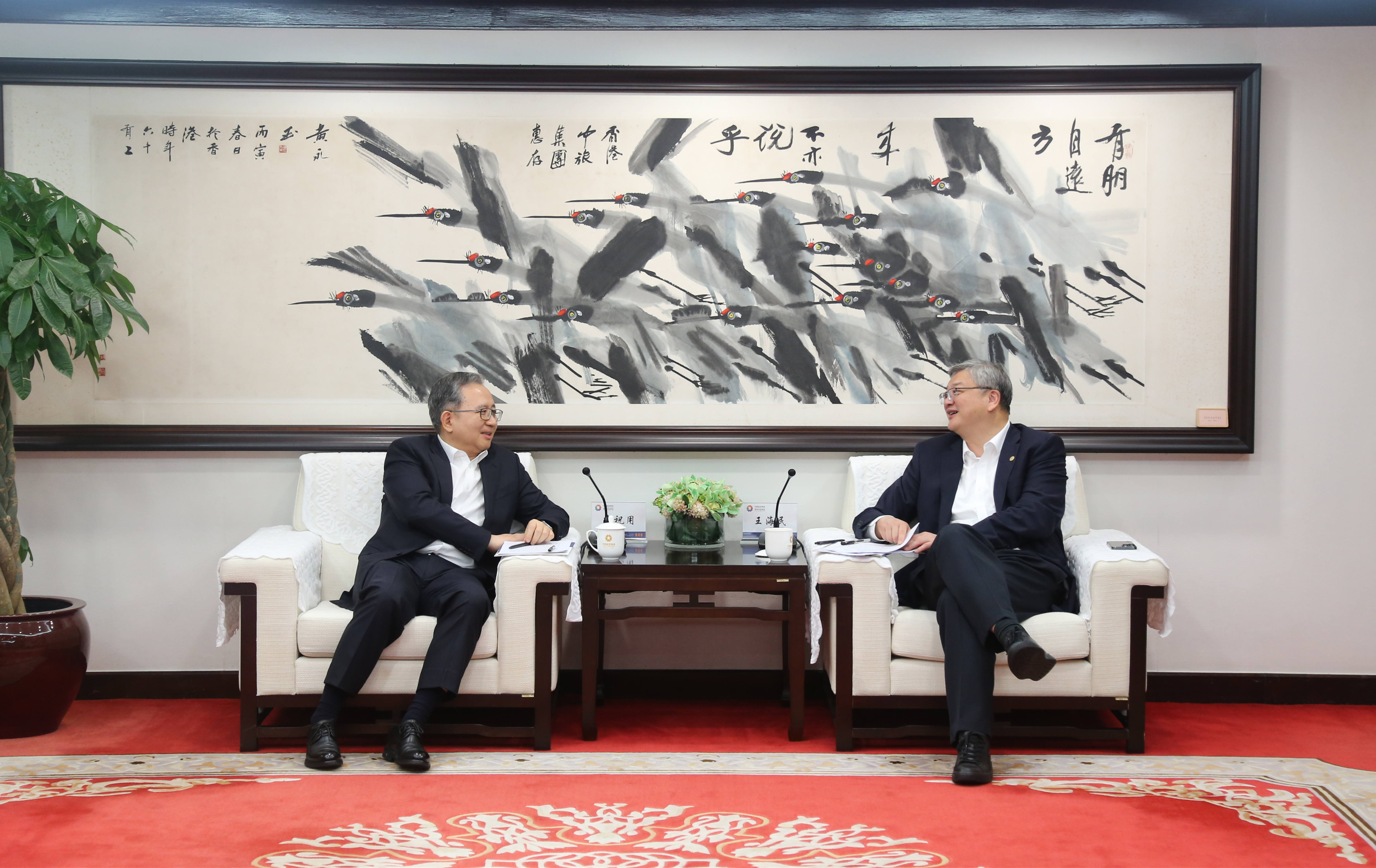 11月18日,集團(tuán)董事長(zhǎng)王海民在香港會(huì)見(jiàn)中國(guó)人壽保險(xiǎn)(集團(tuán))公司副董事長(zhǎng)、總裁李祝用一行。