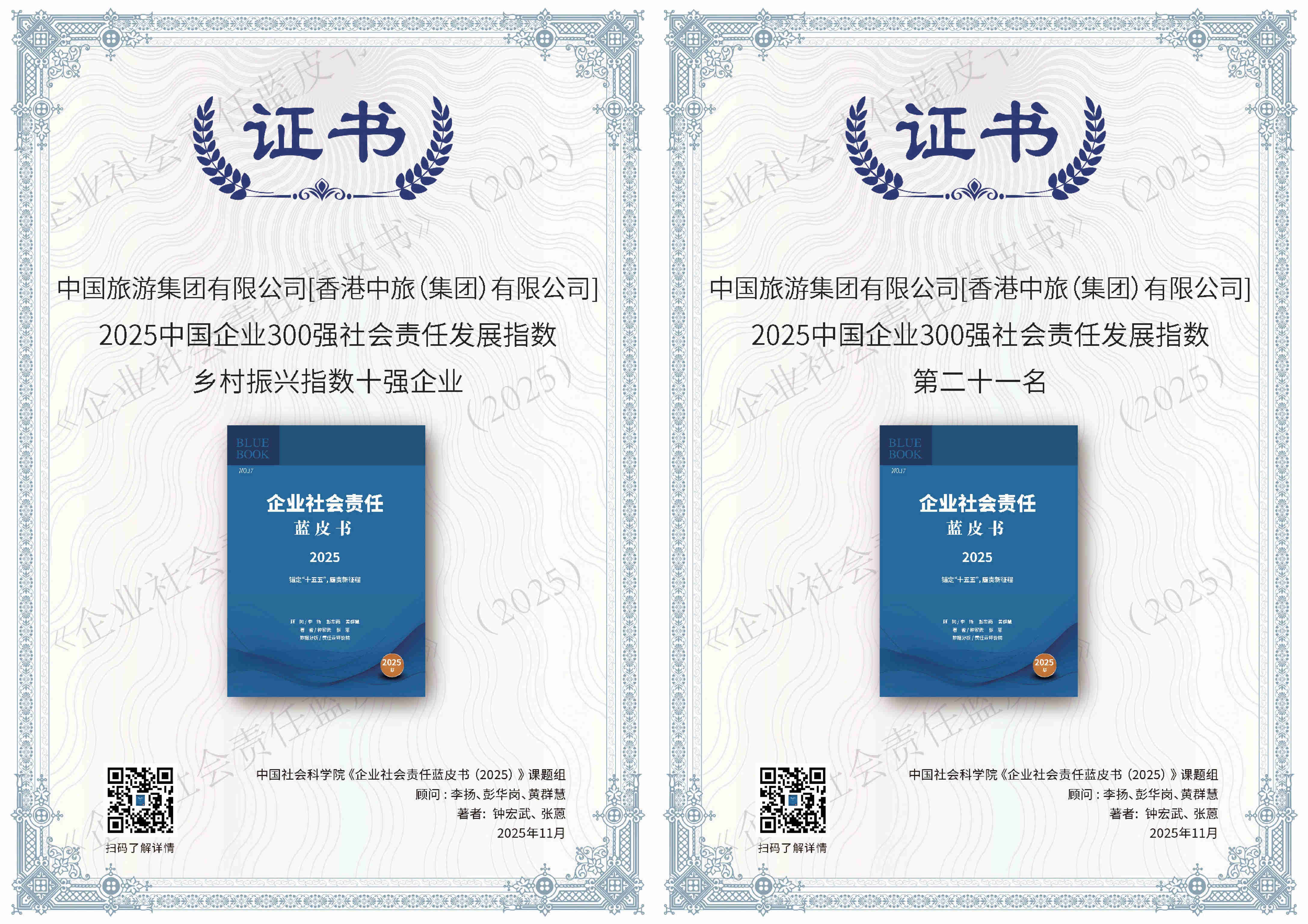 活動(dòng)現(xiàn)場(chǎng)正式發(fā)布《企業(yè)社會(huì)責(zé)任藍(lán)皮書(shū)(2025)》,并公布2025中國(guó)企業(yè)社會(huì)責(zé)任發(fā)展指數(shù)排名。集團(tuán)位列“中國(guó)企業(yè)300強(qiáng)社會(huì)責(zé)任發(fā)展指數(shù)”第21位,較2024年上升4位;位列“國(guó)有企業(yè)100強(qiáng)社會(huì)責(zé)任發(fā)展指數(shù)”第16位,較2024年上升1位;獲評(píng)“2025中國(guó)企業(yè)300強(qiáng)社會(huì)責(zé)任發(fā)展指數(shù)鄉(xiāng)村振興指數(shù)十強(qiáng)企業(yè)”“2025責(zé)任鯨牛獎(jiǎng)—責(zé)任企業(yè)獎(jiǎng)”?!镀髽I(yè)社會(huì)責(zé)任藍(lán)皮書(shū)》是中國(guó)企業(yè)社會(huì)責(zé)任領(lǐng)域最具影響力的研究成果之一,展示了中國(guó)企業(yè)在履行社會(huì)責(zé)任方面的發(fā)展趨勢(shì)。