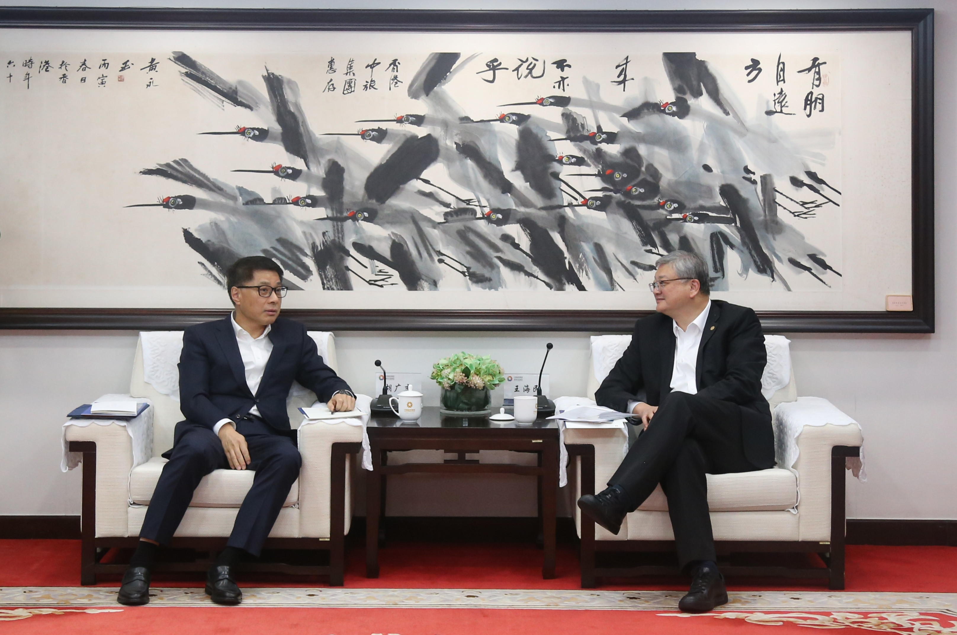 1月14日,集團(tuán)董事長(zhǎng)王海民在香港會(huì)見(jiàn)上海市普陀區(qū)委書記胡廣杰一行。