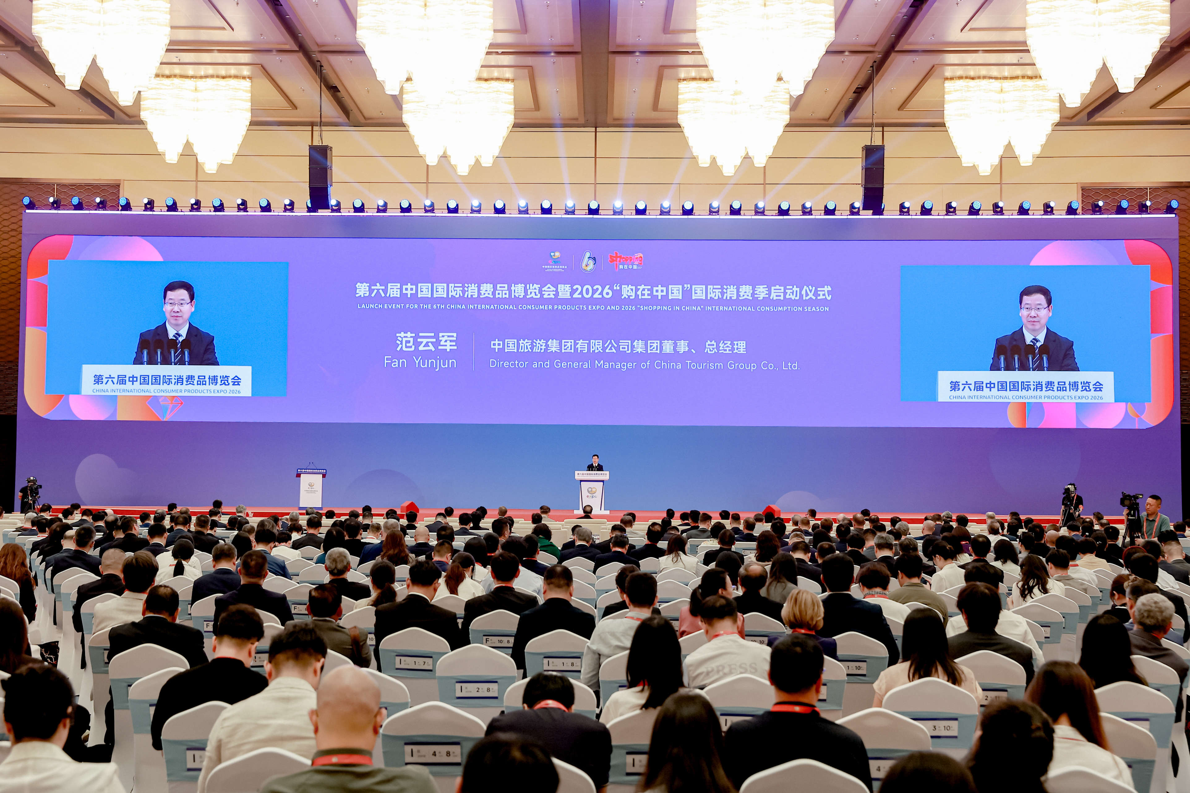 4月13日,第六屆中國國際消費品博覽會暨2026“購在中國”國際消費季在??谡絾印V型庹块T、境內(nèi)外參展商、采購商企業(yè)代表等約1000人參加啟動儀式。集團連續(xù)第六次參與盛會,集團總經(jīng)理范云軍出席啟動儀式并致辭,中旅免稅參加“封關(guān)賦能?免稅新篇——全球品牌共話中國免稅市場未來”高端論壇。