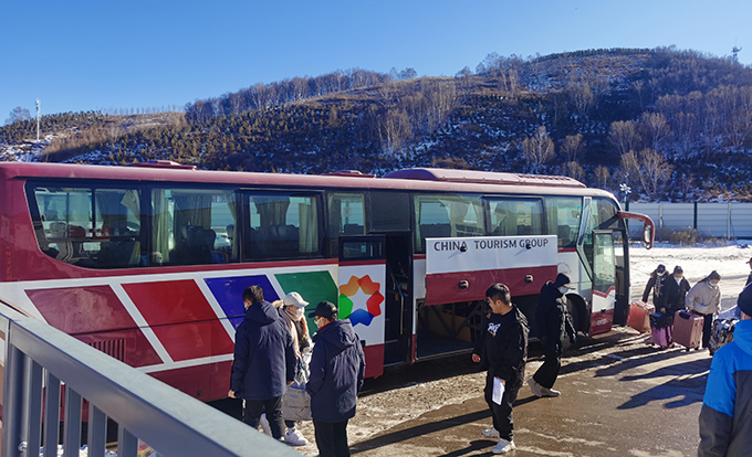 從北國(guó)春城到首都北京。11月30日晚,百余名實(shí)習(xí)生順利從長(zhǎng)春火車(chē)站啟程,為盡可能保障防疫安全,避免與社會(huì)人群發(fā)生密切接觸,公司專(zhuān)程為同學(xué)們申請(qǐng)了候車(chē)綠色通道。列車(chē)于次日6:10抵達(dá)北京站,在站臺(tái),中旅酒店領(lǐng)導(dǎo)和同事們已等候多時(shí),親切陪伴這群洋溢著青春朝氣的同學(xué)們來(lái)到車(chē)身印有中國(guó)旅游集團(tuán)LOGO的大巴車(chē)前,向這群即將踏上冬奧服務(wù)征途的年輕人送上祝福后,目送汽車(chē)駛離。