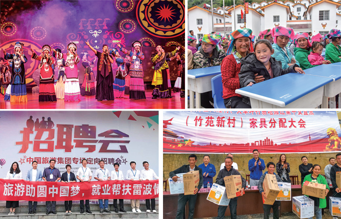 傾力旅游扶貧。中旅投資出資編制了《雷波馬湖景區(qū)荊竹半島旅游產(chǎn)品策劃案》;為助力雷波縣馬湖4A創(chuàng)建,幫扶景區(qū)「游客服務(wù)中心——??诖a頭」段的路燈建設(shè)工作,進一步完善景區(qū)設(shè)施配套;捐贈資金在雷波縣城及磨石村搭建了公益性宣傳牌,完善甲谷村進村標(biāo)識標(biāo)牌建設(shè)和畫冊制作等;聯(lián)合馬邊、雷波兩縣,在中旅投資旗下深圳錦繡中華景區(qū)舉辦了「千年彝風(fēng)─大小涼山彝族文化風(fēng)情周」,為招商引資和推廣文創(chuàng)產(chǎn)品奠定了基礎(chǔ)。