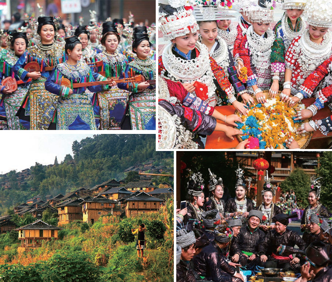 (1)在臺(tái)江歡度苗族「姊妹節(jié)」,在清水江畔踩鼓、看苗族盛裝游行、千人長(zhǎng)桌宴。(2)參觀時(shí)洞銀匠工藝,欣賞整套銀飾、手工刺繡服飾盛裝的嫁妝。(3)親臨黃果樹瀑布,領(lǐng)略大自然的杰作。(4)游覽天星橋景區(qū),觀賞石、樹、水的美妙結(jié)合。(5)打卡著名的西江千戶苗寨夜景,沉醉在最美苗鄉(xiāng)。