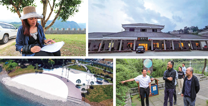 圖1-4:1.集團(tuán)掛職干部、雷波縣人民政:府副縣長劉文華2018年在調(diào)研工作時不幸摔傷,造成手臂粉碎性骨折,但她帶病堅持工作(文宏君 攝);2.新建的馬湖景區(qū)游客服務(wù)中心(雷波縣馬湖保護(hù)中心供圖);3.馬湖景區(qū)大灣如月景點(雷波縣馬湖保護(hù)中心供圖);4.2020年9月10日,香港中旅國際投資有限公司黨委書記、董事長蔣洪(左二)一行到馬湖景區(qū)調(diào)研荊竹半島項目,在馬湖金龜島聽取涼山州政協(xié)副主席、雷波縣委書記王榮華(左一)的情況介紹(文宏君攝)