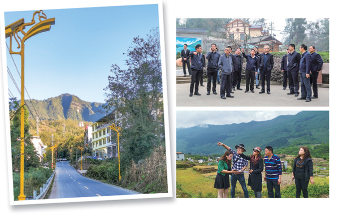 圖1-3:1.中國旅游集團(tuán)捐建馬湖4A景區(qū):路燈(雷波縣馬湖保護(hù)中心供圖);2.2020年11月15日,中國旅游集團(tuán)黨委書記、董事長萬敏(前排右三)、中央紀(jì)委扶貧辦主任武世平(前排右二)到四川省雷波縣考察調(diào)研旅游產(chǎn)業(yè)幫扶工作,實地考察省級風(fēng)景名勝區(qū)馬湖荊竹半島旅游產(chǎn)業(yè)項目,聽取涼山州政協(xié)副主席、雷波縣委書記王榮華(前排右四)的情況介紹,召開工作推進(jìn)座談會;3.2019年5月1日,中旅集團(tuán)掛職干部、雷波縣人民政府副縣長劉文華率中旅集團(tuán)駐地扶貧組同地方黨政領(lǐng)導(dǎo)調(diào)研馬湖(張成 攝)