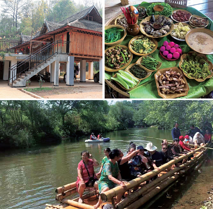 圖1-3:特色民居;特色美食是大自然的饋贈(zèng);竹筏漂流