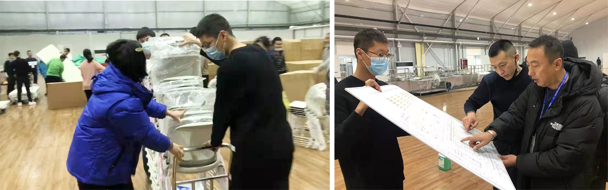 旭東來到冬奧村,正式加入餐飲組時,他形容道:“剛開始什么都沒有。”那時的運動員餐廳只有兩個棚子,大家很著急。在大家共同的努力下,餐廳的狀況得到了改觀,為了盡可能節(jié)約開支,無論領(lǐng)導(dǎo)還是大廚,餐飲組全員當(dāng)起了“搬運工”,廚房用具到貨卸貨、一張張桌椅板凳,旭東說,“都是我們一點點搬運的,也是我們一項項落位拼好的?!?/p>