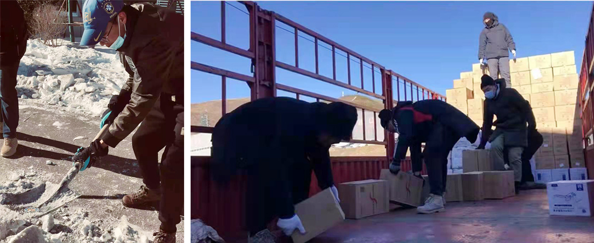 崇禮的冬天,比北京和山西老家都來的早、來的突然。一夜之間天寒地凍,一夜之間雪沒膝蓋。大雪后,大家一起清掃餐廳門口的積雪,開辟出道路,幾位年輕人邊掃雪邊哼唱著曲子,旭東感覺一下子回到了學(xué)校。有一天,在大貨車上卸貨時,旭東的臉愣是被寒風(fēng)吹破?!耙驗槭悄欠N十幾個輪子的貨車,必須要站上去卸貨,我和幾個同事在車上卸了一天的貨,然后我的臉就被吹傷了,溫度一高就疼?!彼貞浀溃骸按蠹叶己荜P(guān)心我,董湛哥給我找了嬰兒油,還給了我面膜讓我保護好自己?!倍炜梢愿?,但有愛就不怕,心也會更暖。
