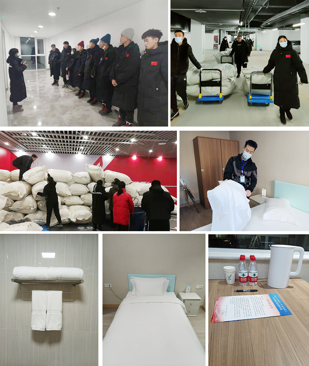 在冬奧村工作的兩個(gè)多月,讓我深深體會(huì)到了合作和堅(jiān)持的重要性。由于前期一些工程的原因,我們只有3天時(shí)間準(zhǔn)備全要素壓力測(cè),人手緊張,任務(wù)非常艱巨。集團(tuán)所屬的各個(gè)酒店集結(jié)了30來(lái)個(gè)骨干專門(mén)進(jìn)村支援我們,平時(shí)都是酒店做房的熟手,到村里以后專攻鋪床,他們攬下了做房工作中技術(shù)含量最高的任務(wù),我們就集中精力做好物資移入和房間布置工作。正是大家的通力合作,才能在這么短的時(shí)間內(nèi),把一張張床、一間間房準(zhǔn)備出來(lái)。