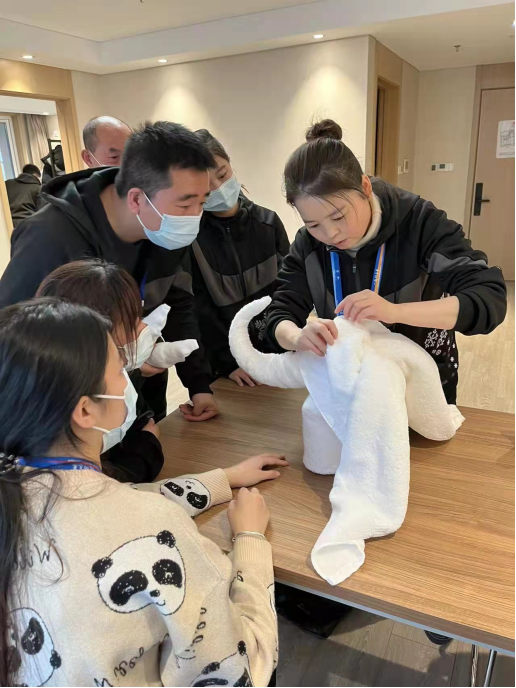 三地海泉灣積極響應(yīng),在嚴(yán)密組織、嚴(yán)肅紀(jì)律的前提下,第一時(shí)間進(jìn)行廣泛內(nèi)部動員,共遴選出14名專業(yè)強(qiáng)、素質(zhì)佳、表現(xiàn)優(yōu)的核心骨干,按要求分批抵達(dá)張家口冬奧村。目前,在中旅酒店協(xié)調(diào)部署下,14名援奧骨干已分別就任公共區(qū)域主管、保潔主管、健身中心主管、庫房及客房部樓層主管、中西餐廚師等崗位,承擔(dān)起服務(wù)培訓(xùn)和團(tuán)隊(duì)管理工作。援奧骨干盡職盡責(zé),為北京冬奧會的順利舉辦提供專業(yè)性服務(wù),獲得了冬奧村主管機(jī)構(gòu)的一致好評。咸陽海泉灣派出的骨干董婭紅個(gè)人被評為“服務(wù)標(biāo)兵”,她所負(fù)責(zé)的公寓樓5號院班組榮獲“先進(jìn)班組”稱號。