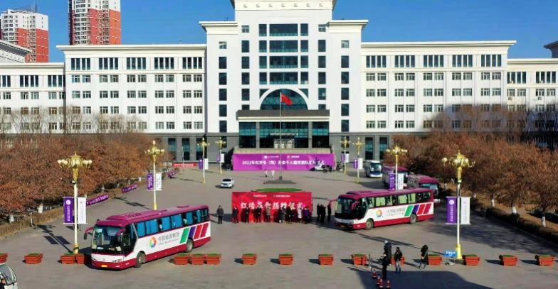 在出征儀式上,頒發(fā)紀(jì)念冊(cè)、授旗儀式等一系列現(xiàn)場(chǎng)活動(dòng)過(guò)后,由承德市委有關(guān)領(lǐng)導(dǎo)宣布出征,參與儀式的領(lǐng)導(dǎo)和老師護(hù)送實(shí)習(xí)生們來(lái)到車前,目送同學(xué)們駛離學(xué)校。