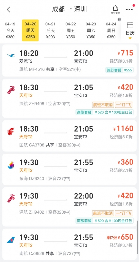 (圖:飛豬App上可預(yù)訂深圳航空、四川航空“一訂飛”“訂就飛”航班)