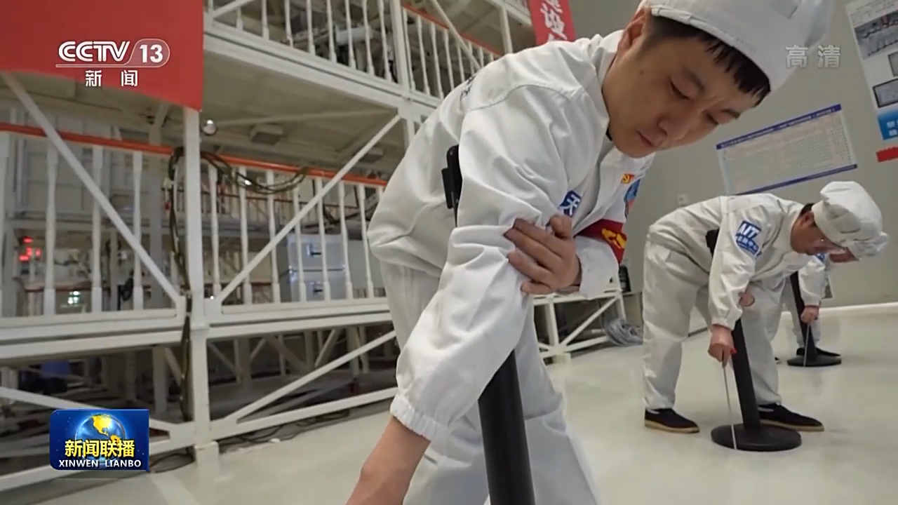 航天科技集團五院總環(huán)部神舟飛船總裝班組組長 張舸:要確保設(shè)備安裝平面與這個設(shè)備操作桿是一個垂直狀態(tài),也就是90度,完全90度的狀態(tài),才能夠確保它能很精準地插入到孔位。