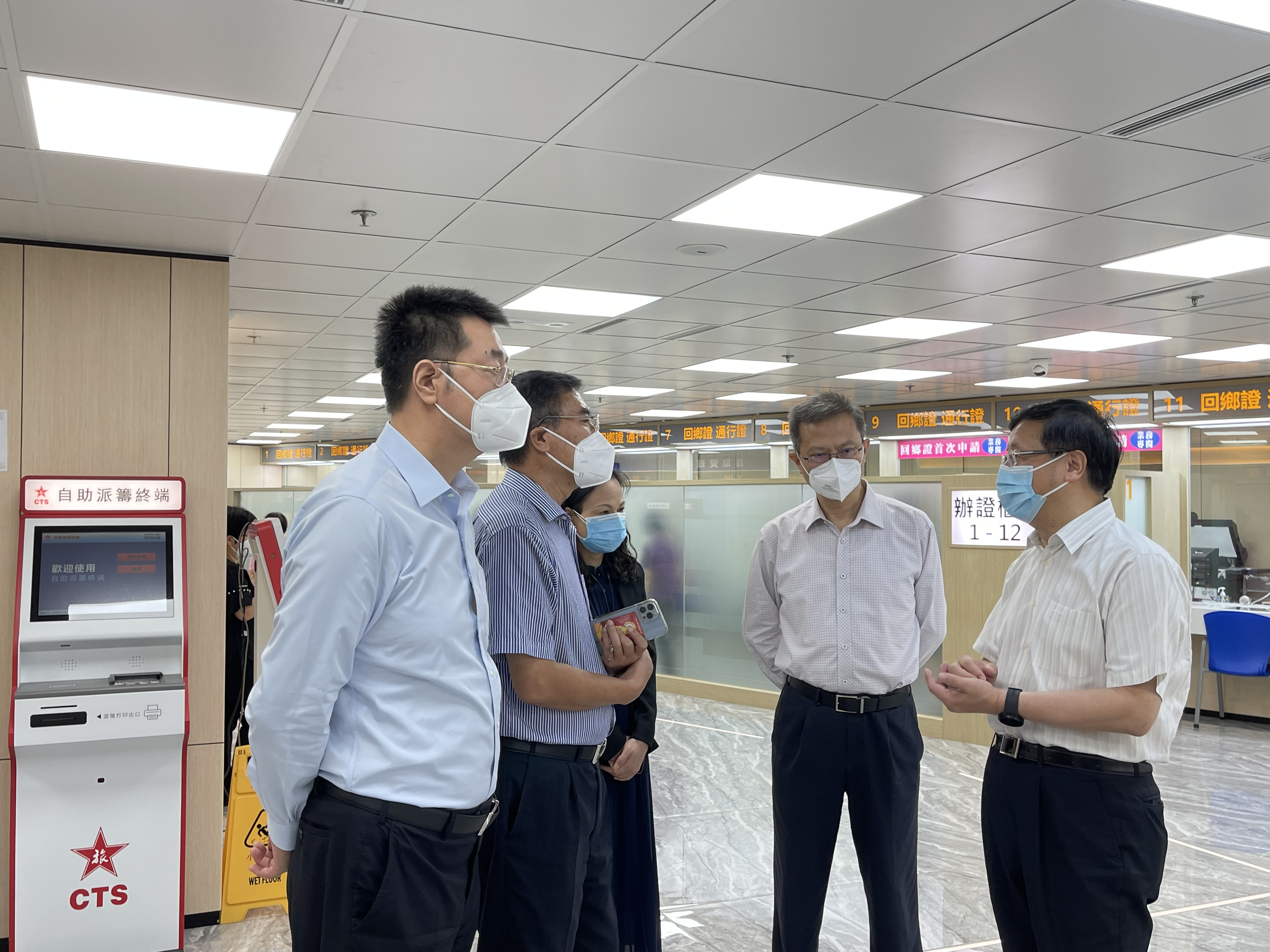 陳寅董事長詳細(xì)詢問了證件業(yè)務(wù)部目前辦證量和受理能力等情況,并對(duì)證件業(yè)務(wù)部港島證件服務(wù)中心的場(chǎng)地環(huán)境和服務(wù)設(shè)施予以肯定。陳寅董事長強(qiáng)調(diào),證件工作是政府委托業(yè)務(wù),要為廣大香港市民、臺(tái)灣同胞提供優(yōu)質(zhì)滿意服務(wù)。同時(shí),證件業(yè)務(wù)部要做好疫情防控工作,科學(xué)合理布局服務(wù)網(wǎng)點(diǎn),為疫后證件辦理高峰期做好準(zhǔn)備。