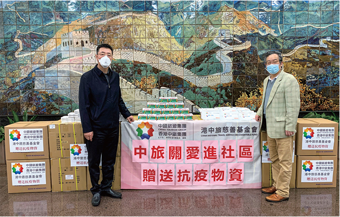 香港第五波疫情形勢(shì)持續(xù)嚴(yán)峻,單日確診數(shù)字高企不下,全面防控疫情擴(kuò)散、全力保障市民健康安全到了最緊要的關(guān)頭。為堅(jiān)決貫徹落實(shí)習(xí)近平總書記關(guān)于支援香港抗擊第五波新冠肺炎疫情工作的重要指示精神,切實(shí)履行駐港央企的社會(huì)責(zé)任,集團(tuán)及所屬在港企業(yè)持續(xù)開展「中旅關(guān)愛進(jìn)小區(qū)」活動(dòng)。3月6日,集團(tuán)再度捐贈(zèng)600 余萬(wàn)港幣的抗疫物資,繼續(xù)支持香港社會(huì)防疫抗疫工作。集團(tuán)副總經(jīng)理石善博專程來(lái)到觀塘雙順小區(qū),慰問集團(tuán)員工、觀塘區(qū)議員符碧珍,并向小區(qū)捐贈(zèng)了防護(hù)口罩、連花清瘟膠囊、快速檢測(cè)盒等抗疫物資。